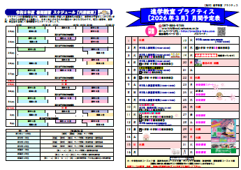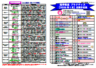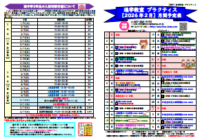 『円座教室:お知らせ』 *2026年2月 月間予定表 *現中学3年生の入試対策日程について *現小6生 中学準備講座開講 *学年末テスト対策日程について *2/9(月)中1生・中2生 いよいよ診断テストです!! *春のご入塾キャンペーンが始まります!! 右のイメージをクリックするとPDFファイルがご覧頂けます ⇒
